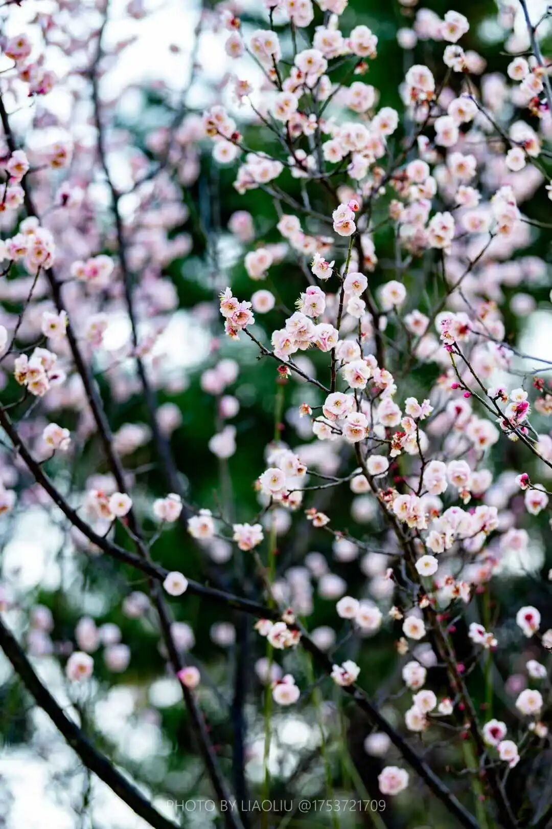 美人梅的綻放,同樣低調(diào)。一簇簇粉意綴在枝頭,不似濃墨重彩的渲染,反倒像揉碎的月光,輕輕覆在枝椏上。風(fēng)過(guò)處,花瓣隨性飄落,鋪在公園小路上,帶著淡淡的粉意,隨行人腳步漫過(guò)每一處角落。無(wú)人刻意駐足定格,唯有路過(guò)時(shí)不經(jīng)意的一瞥,腳步稍頓,便又帶著這縷淺粉,奔赴各自的日常。