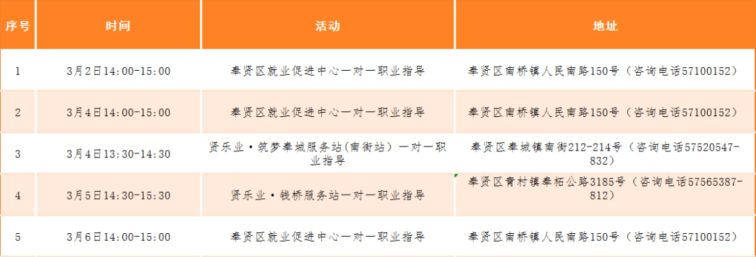 原標(biāo)題:《奉賢區(qū)“15分鐘就業(yè)服務(wù)圈”本周站點活動安排》