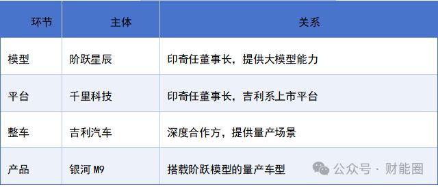 千里科技前身為力帆,2020年被吉利控股通過(guò)滿江紅基金收購(gòu),2024年印奇斥資超24億元成為第二大股東并任董事長(zhǎng),公司業(yè)務(wù)轉(zhuǎn)向“AI+車”,整合了極氪智駕團(tuán)隊(duì)、吉利研究院、曠視智駕品牌“邁馳智行”等資源。吉利官方列出的五大AI生態(tài)圈伙伴包括階躍、千里、時(shí)空道宇、芯擎科技、星紀(jì)魅族,階躍是其中“唯一指定”的大模型企業(yè)。