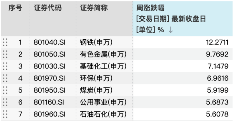 過去一周,節(jié)后復(fù)工與供給側(cè)約束相互疊加,“反內(nèi)卷/漲價”的市場敘事不斷升溫,A股市場的資源品相關(guān)板塊領(lǐng)漲。從申萬行業(yè)指數(shù)來看,鋼鐵、有色金屬板塊分別大幅上漲12.27%和9.77%,基礎(chǔ)化工、環(huán)保板塊的漲幅也達(dá)到了7.15%和6.96%,煤炭、公共事業(yè)、石油石化板塊的漲幅同樣超過5%。總體而言,市場風(fēng)格正逐步向產(chǎn)業(yè)鏈上游的周期板塊切換,油氣、磷化工、貴金屬、稀土等產(chǎn)品價格上漲的相關(guān)板塊表現(xiàn)尤為突出。