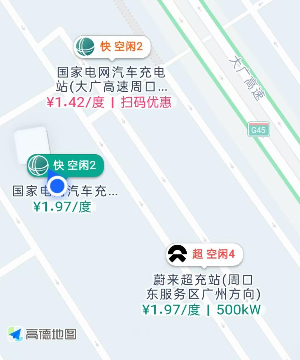 多位車主也表示,高德地圖顯示無(wú)充電服務(wù),但百度地圖顯示有,開過(guò)去一看確實(shí)有快充樁。