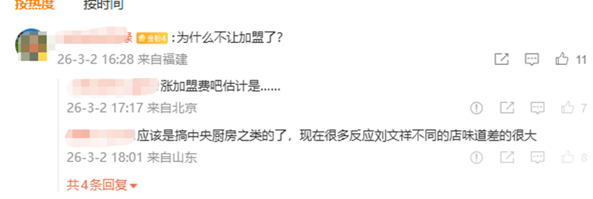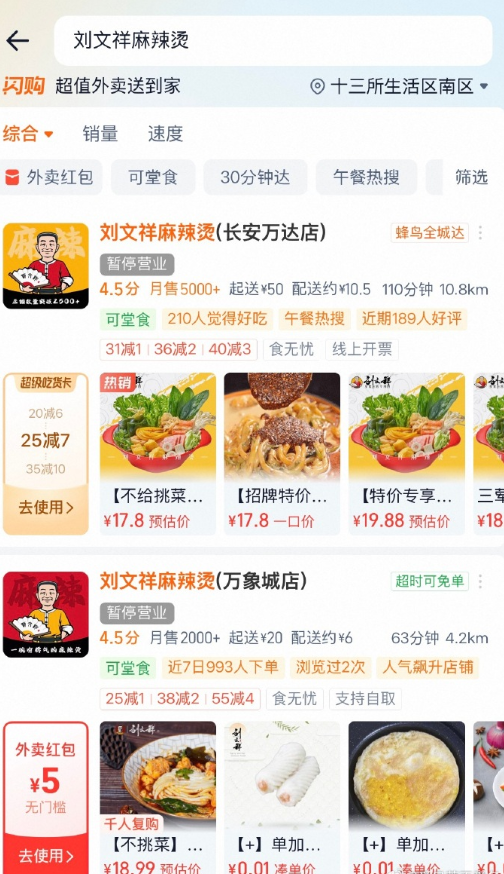 憑借這一角色,“劉文祥”麻辣燙被成功帶火。熱搜發(fā)酵后,全國多地門店客流暴增:鄭州某門店日銷量從300份飆升至1000份,外賣訂單占比超70%;部分門店因客流過大貼出“限購2份”告示,甚至關(guān)閉外賣業(yè)務(wù)。更有網(wǎng)友截圖顯示,“劉文祥”疑似因加盟需求激增暫停合作業(yè)務(wù),也有推測稱品牌或為保證口味統(tǒng)一調(diào)整加盟政策或搭建中央廚房體系。