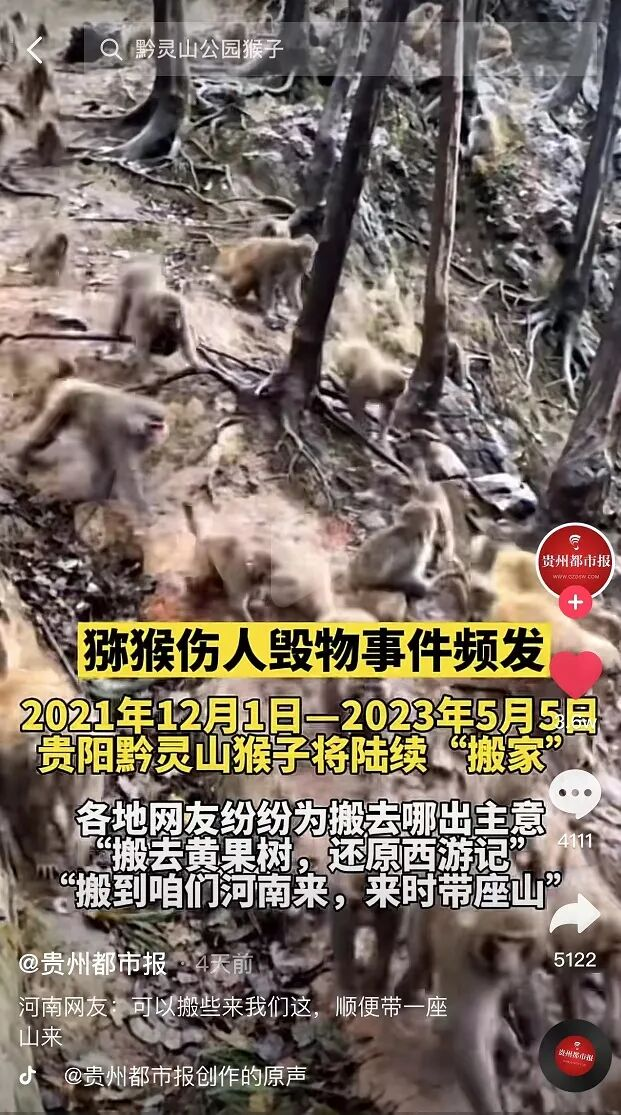 黔靈山的猴子數(shù)量過剩,管理方不得不選擇把過多的猴子轉(zhuǎn)移