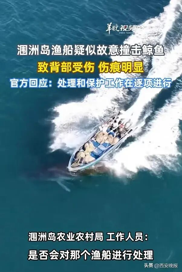 2月7日,廣西北海潿洲島的觀鯨游客見證了令人揪心的一幕:一艘漁船從布氏鯨WZ-056——因曾被螺旋槳劃傷而得名“刀疤哥”的個體背上駛過,留下了50至60厘米長的新傷口。