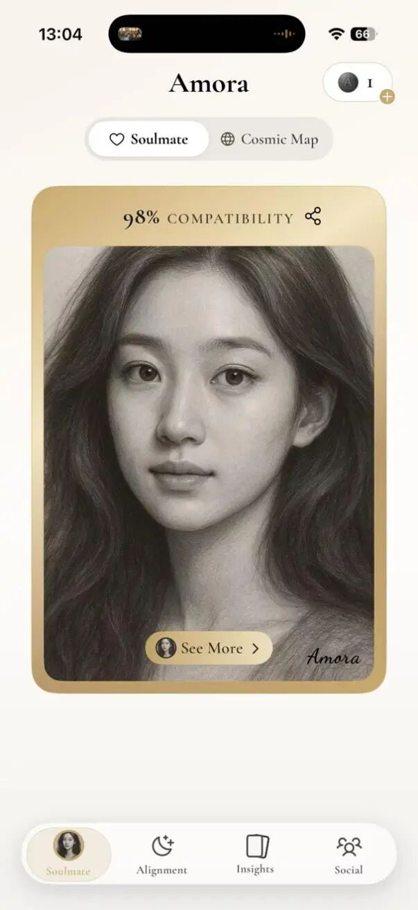 而Amora完全放棄了每日運(yùn)勢等占星服務(wù),主線徹底轉(zhuǎn)向“顯化Soulmate”。