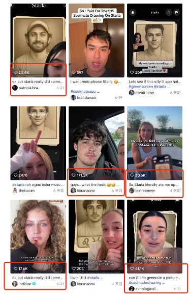 從社媒內(nèi)容看,Starla和Amora給不同市場傳遞了不同服務(wù):前者是“來看看你的soulmate長什么樣”,后者是“來這里找你的soulmate、把他/她帶回家”。
