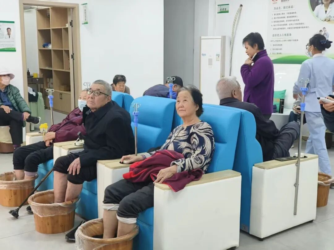 老人們?cè)陴B(yǎng)老服務(wù)中心體驗(yàn)瑤藥泡腳服務(wù)。