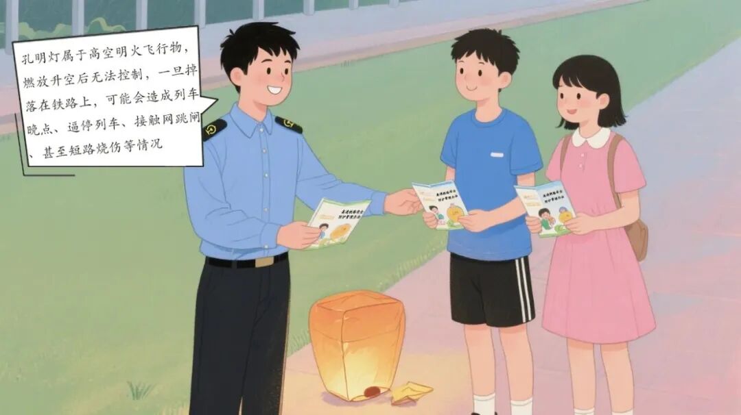 一般來(lái)說,孔明燈燃燒時(shí)溫度可達(dá)300℃,升空燃燒一段時(shí)間后,內(nèi)部火焰會(huì)自然熄滅并飄落。若在鐵路附近燃放,受風(fēng)向、風(fēng)速影響,孔明燈很容易未燃盡就飄落在鐵路接觸網(wǎng)或高壓電線上,引發(fā)短路、電力火災(zāi),嚴(yán)重威脅動(dòng)車等列車的運(yùn)行安全。