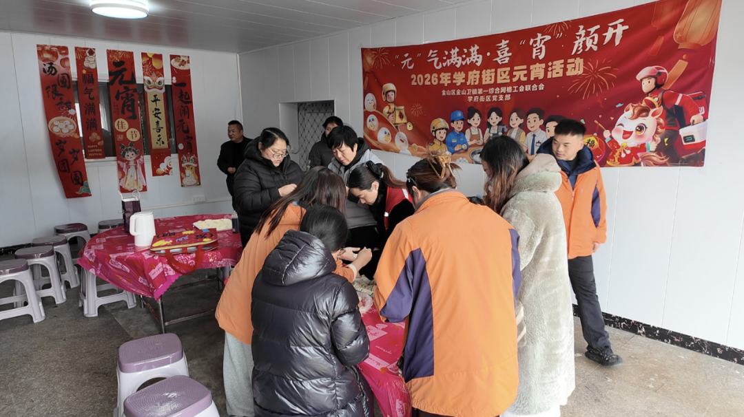 在金山衛(wèi)鎮(zhèn)學(xué)府街區(qū)黨支部活動(dòng)點(diǎn)里,來(lái)自家政、駕校、快遞等不同行業(yè)的新就業(yè)群體和商鋪經(jīng)營(yíng)者歡聚一堂。大家分工合作,揉面團(tuán)、包湯圓、捏餃子。熱氣騰騰的湯圓和餃子出鍋后,大家圍坐在一起品嘗,其樂(lè)融融。