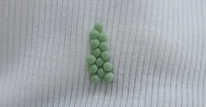 網(wǎng)友在衣物上發(fā)現(xiàn)的綠色圓形顆粒就是荔枝蝽的蟲卵,它們常附著在衣物褶皺、衣角等隱蔽處。