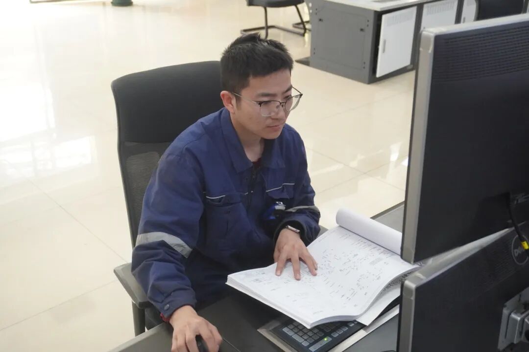 為盡快掌握裝置“脾性”,他用最“笨”的方法攻堅:白天追著管線跑,逐個摸清介質(zhì)走向;晚上鉆研資料,吃透設計原理。他的筆記本上密密麻麻記著流程與要點,這本磨出毛邊的本子成了隨身“寶貝”,也讓他快速成為同事眼中的“活流程”。