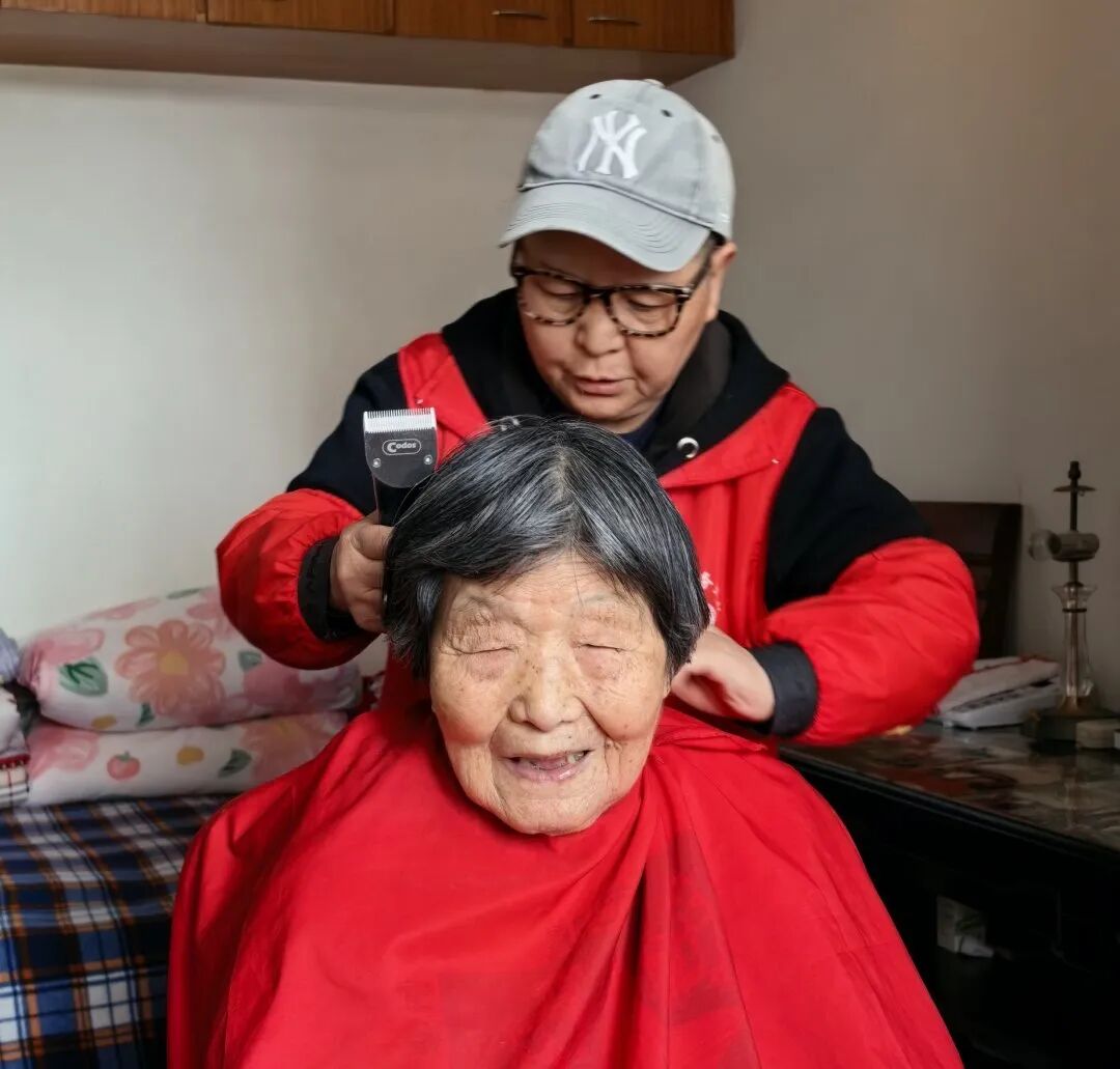 同樣被這份“腳底板上的溫度”打動的,還有上理小區(qū)93歲獨居老人賈阿婆。她的兩個女兒常年在國外,出門理發(fā)和修腳成了晚年生活的“大坎”。正當(dāng)她愁眉不展時,居委會主任韋曉捷帶著理發(fā)師、修腳師陳師傅和街道的顧老師主動敲開了她家的門。為讓修腳更順利、減少痛感,工作人員還貼心提前打電話囑咐阿婆先用溫水泡腳。