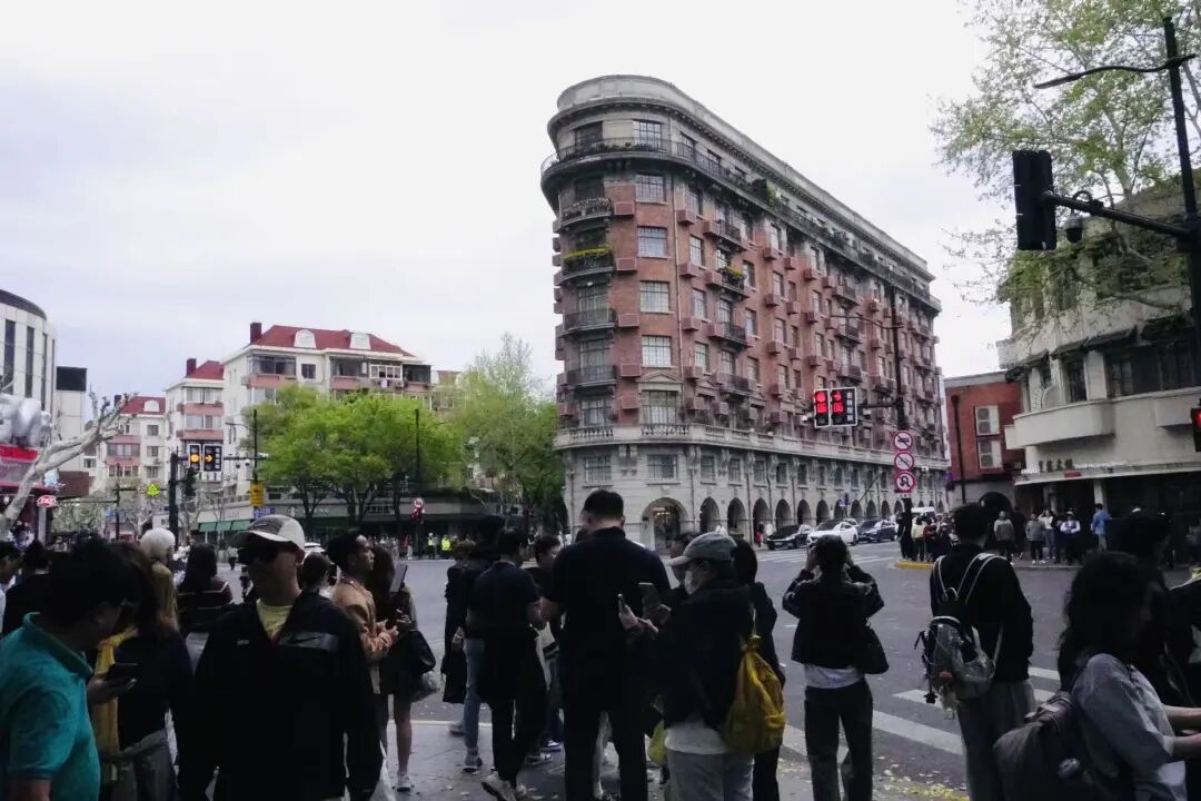 春日清晨,百年武康大樓被第一縷陽光喚醒,兩種目光在此交織。馬路對面,全球游客舉著設(shè)備尋找最佳角度,鏡頭里的“建筑巨輪”線條優(yōu)雅,西班牙游客稱其是鄔達克最漂亮的設(shè)計,外地游客感慨這是家鄉(xiāng)難見的風(fēng)景。