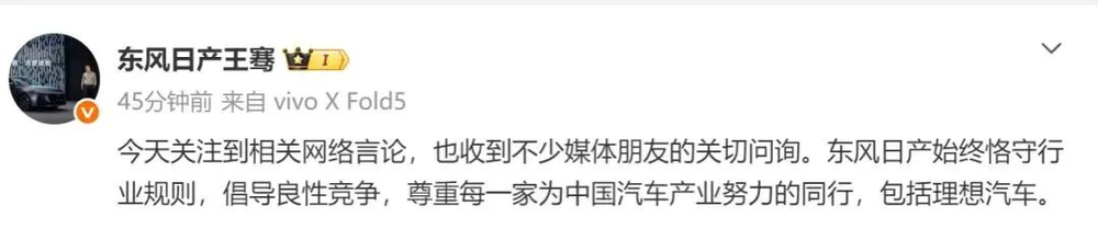 面對擺在眼前的證據(jù),東風(fēng)日產(chǎn)的回應(yīng)耐人尋味:“東風(fēng)日產(chǎn)始終恪守行業(yè)規(guī)則,倡導(dǎo)良性競爭,尊重每一家為中國汽車產(chǎn)業(yè)努力的同行,包括理想汽車?!?/p>