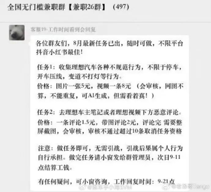 甲方找到中間人,提出要針對某個競品進(jìn)行輿論攻擊;中間商接下活后,將任務(wù)分發(fā)給下游的MCN機(jī)構(gòu);MCN再把準(zhǔn)備好的話術(shù)包發(fā)給水軍——敏感詞都換成隱語,比如“小電瓶”指代電池問題,“轉(zhuǎn)向不跟手”暗示操控缺陷,這樣平臺掃描也檢測不出來。賬號是提前養(yǎng)好的批量空白號,幾百個一起行動,互相點(diǎn)贊轉(zhuǎn)發(fā),制造虛假熱度。而且會卡準(zhǔn)新車上市的關(guān)鍵節(jié)點(diǎn),在抖音、微博、小紅書等平臺同步爆發(fā),讓被攻擊方疲于應(yīng)對,根本不知道從哪里著手封堵。