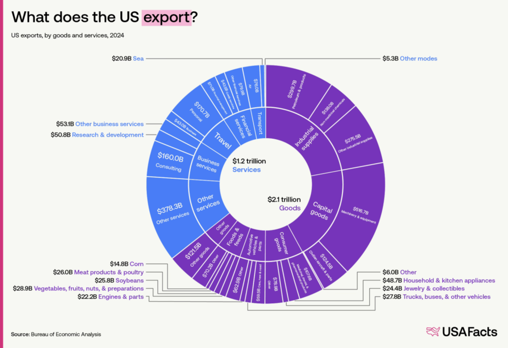 2024年,美國商業(yè)服務出口達1.2萬億美元,是中國的數倍。