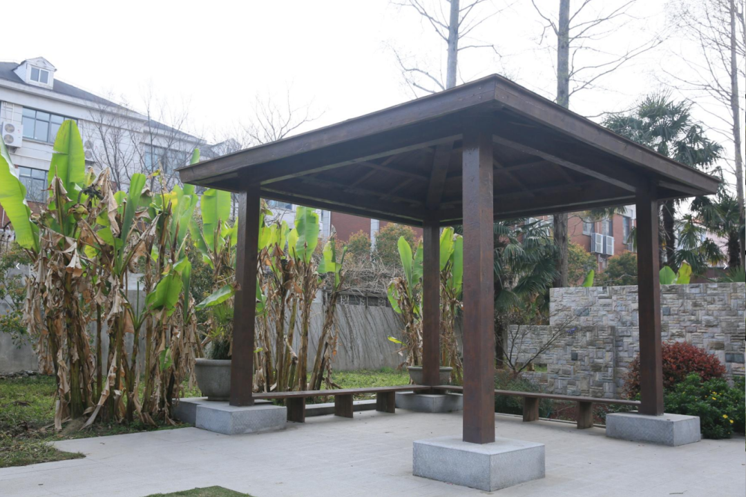 這片4830平方米的“天然氧吧”,木棧道在水杉林間蜿蜒穿梭,兩側(cè)生長(zhǎng)著無患子與觀賞草,漫步其中滿是野趣。園內(nèi)設(shè)有涼亭可供休憩,夏日前來格外愜意。