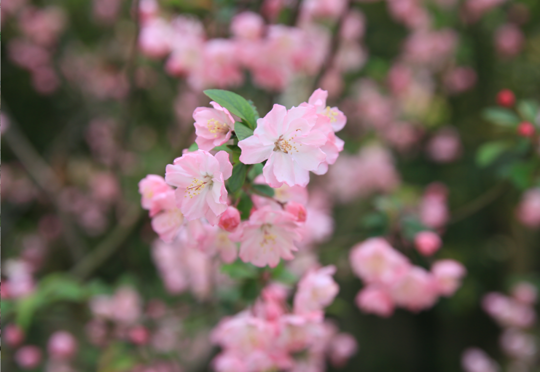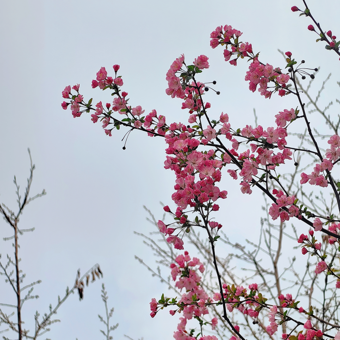 1540平方米的長(zhǎng)條形小園,隱匿在居民區(qū)旁。入口處設(shè)有鐵藝景墻,往里走是林蔭廣場(chǎng)與木棧道,海棠、紅葉李開得繁茂熱鬧。傍晚時(shí)分,常能看到阿姨們跳舞、小朋友嬉戲的身影。