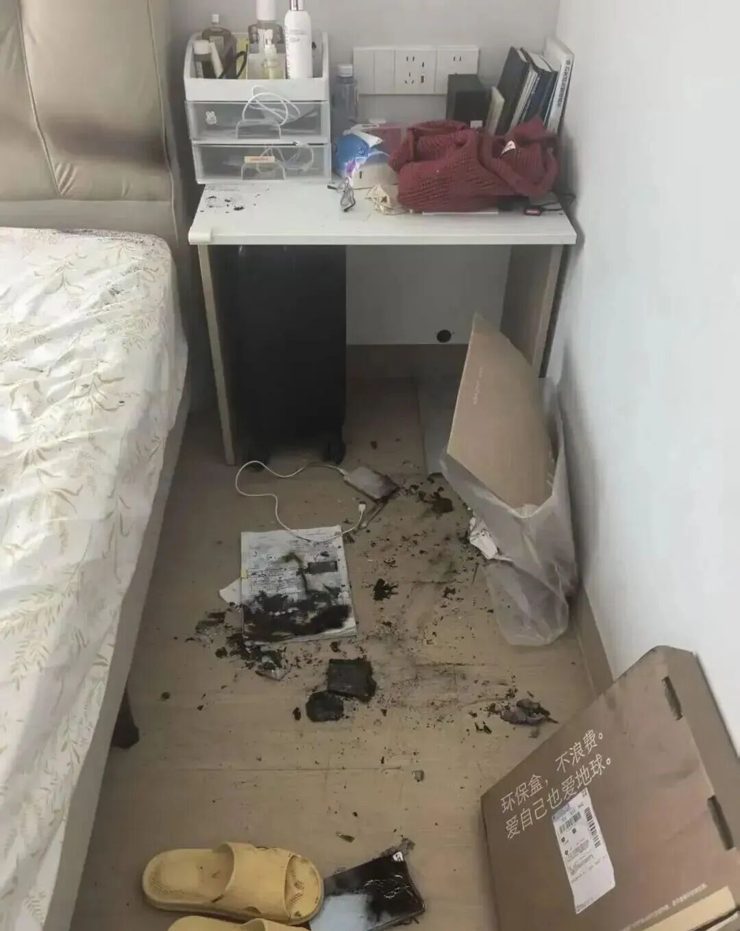 原來是放在床頭柜插座上充電的充電寶意外爆炸