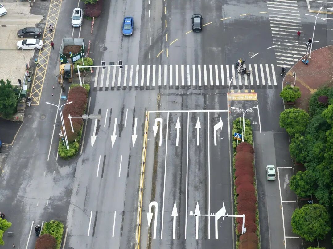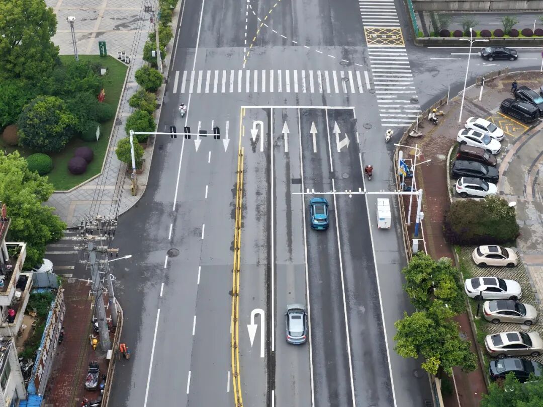 交管部門對翠湖一路由西向東一側、銅官大道由南往北一側的路口進行了優(yōu)化,調整了車道寬度、增設了掉頭專用車道,并設置了掉頭信號燈,緩解了高峰期車輛掉頭、進入加油站等操作影響直行車輛通行造成的路段擁堵問題,同時在路口施劃了導引線,規(guī)范車輛通過路口的行駛。
