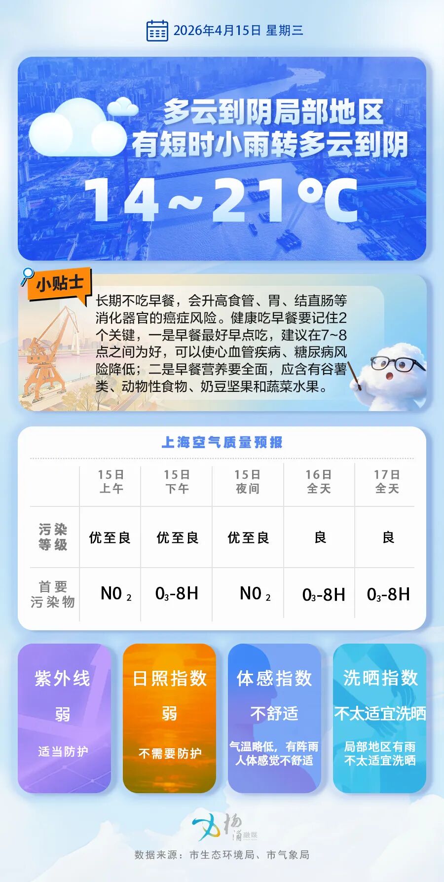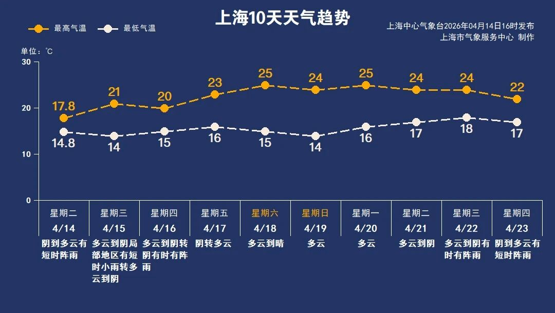 受短波槽影響,上海周四還將迎來一次降水過程,氣溫在15~20℃。從周五開始,大氣環(huán)流形勢將發(fā)生變化,陰雨天氣會暫時告一段落,上海將迎來4到5天的晴好天氣。隨著陽光的回歸,最高氣溫將回升至23~25℃,最低氣溫則在14~17℃,晝夜溫差會有所加大,建議大家早晚記得備一件薄外套。