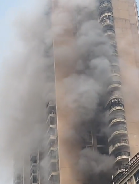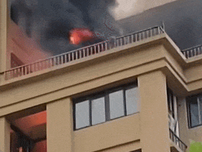 滾滾濃煙從樓內(nèi)不斷冒出,迅速將整棟樓籠罩