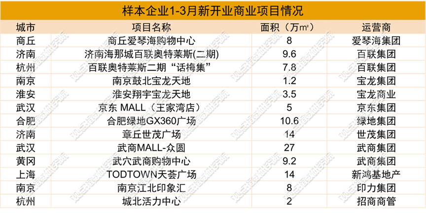 新開業(yè)項目方面,截至2026年3月13日,全國開55個商業(yè)項目,體量超340萬㎡,集中在二三線及下沉市場,業(yè)態(tài)以社區(qū)商業(yè)、區(qū)域型購物中心為主,聚焦便民和家庭消費,如重慶江津吾悅廣場、武漢江夏萬象匯。百聯(lián)、寶龍等頭部企業(yè)有新項目入市,13個項目合計約119.7萬㎡,覆蓋武漢、杭州等新一線及濟(jì)南、商丘等城市,體現(xiàn)商業(yè)下沉與核心城市深耕并行。