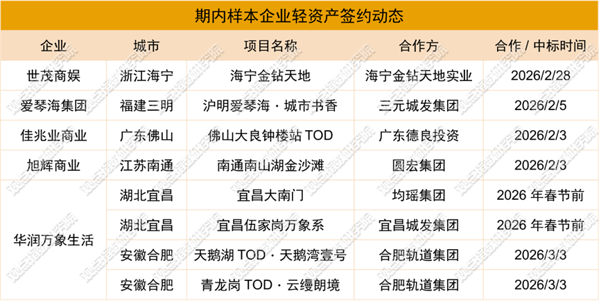 輕資產(chǎn)模式成企業(yè)擴(kuò)張重要路徑,世茂、愛琴海、旭輝、華潤萬象生活等加速布局下沉市場。華潤萬象生活拿下宜昌、合肥4個輕資產(chǎn)項目,鞏固華中、華東商業(yè)版圖;世茂、愛琴海等聚焦長三角、華南等區(qū)域及TOD、文商旅等細(xì)分賽道,形成差異化競爭力。當(dāng)前輕資產(chǎn)已轉(zhuǎn)向“全周期運營+資產(chǎn)增值”綜合服務(wù),考驗企業(yè)綜合能力。