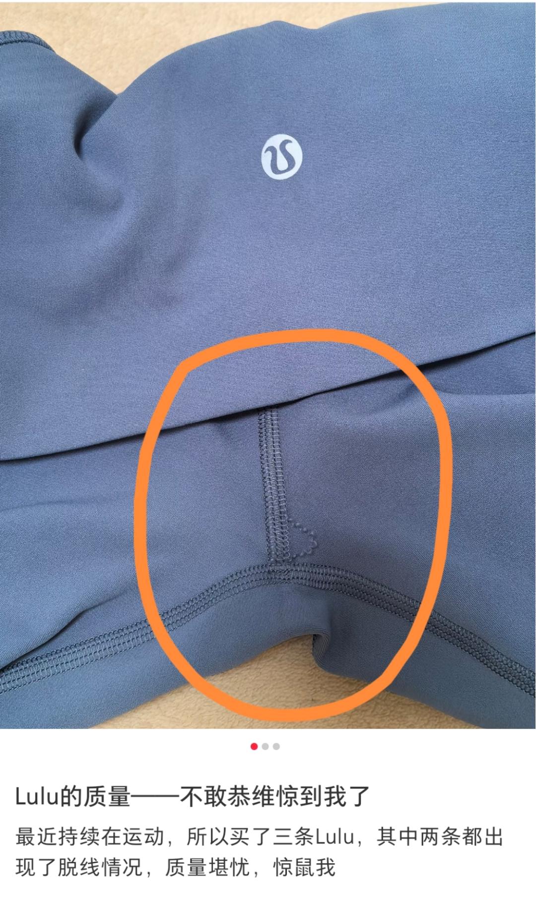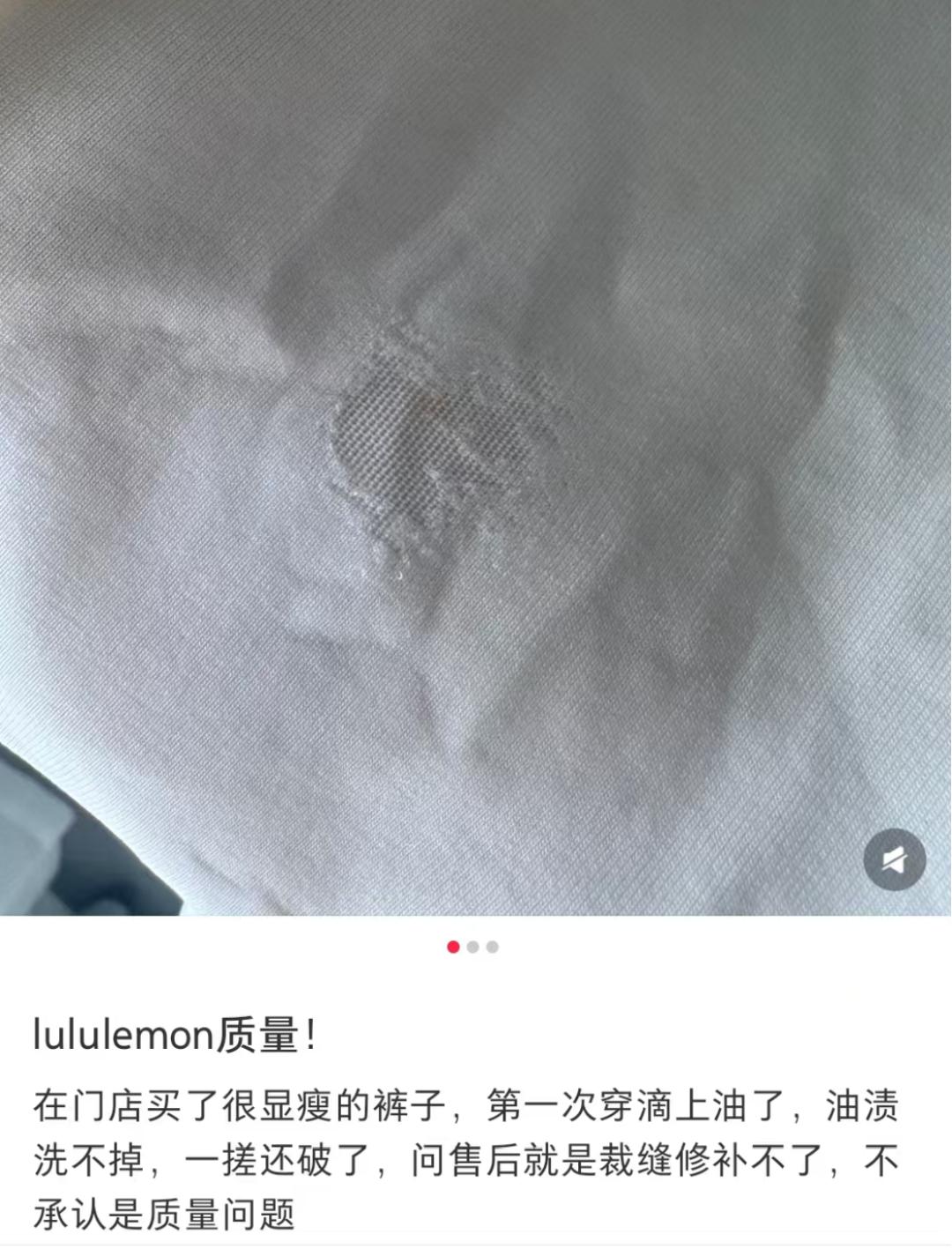 還有用戶表示,三條Lululemon產(chǎn)品中就有兩條出現(xiàn)脫線,質(zhì)量令人擔(dān)憂。