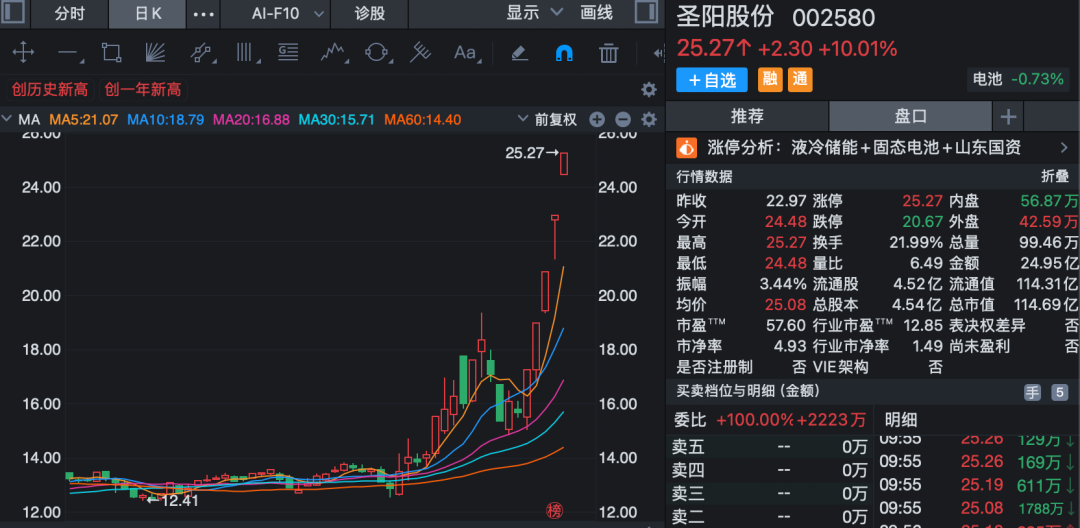 電池產(chǎn)業(yè)鏈板塊反復(fù)活躍,圣陽(yáng)股份(002580)漲停,實(shí)現(xiàn)五連板。石大勝華、中一科技、銅冠銅箔、德??萍?、嘉元科技等個(gè)股紛紛跟漲。