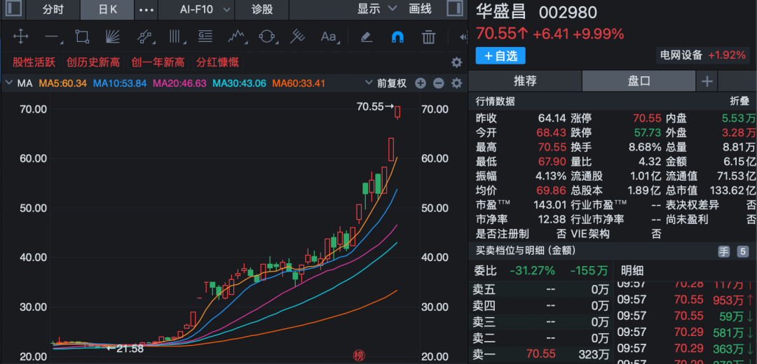 CPO概念板塊延續(xù)強(qiáng)勢(shì)表現(xiàn),華盛昌(002980)在十二天內(nèi)收獲六板,股價(jià)再創(chuàng)歷史新高,中際旭創(chuàng)、劍橋科技、瑞斯康達(dá)、羅博特科、銘普光磁、新易盛等個(gè)股紛紛跟漲。