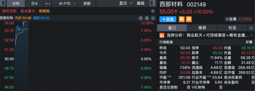 商業(yè)航天概念板塊再度活躍,西部材料漲停,電科藍(lán)天、信科移動(dòng)、新雷能等個(gè)股漲幅靠前。