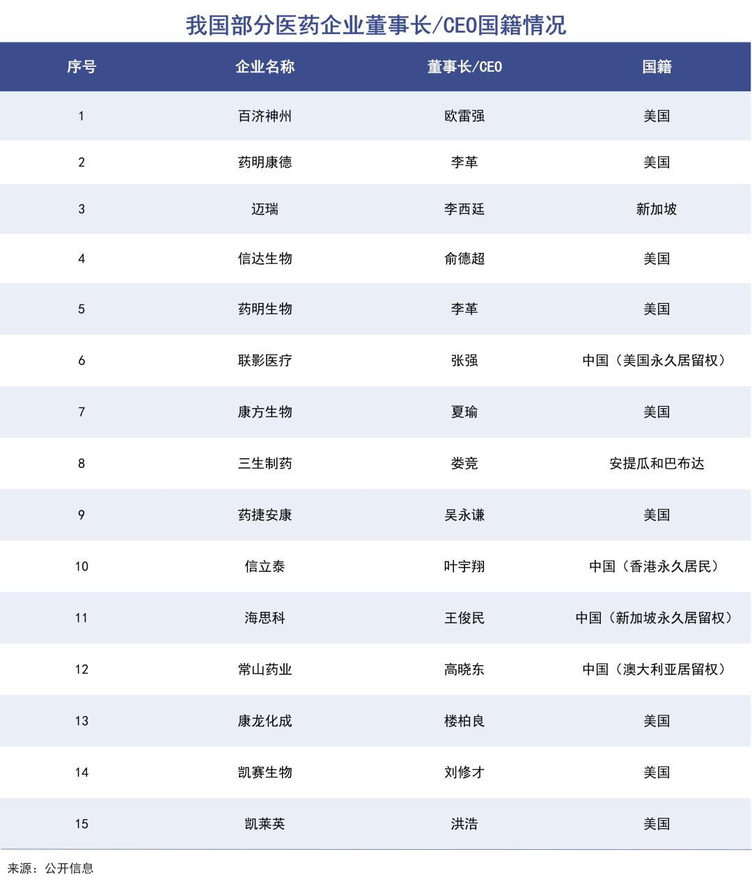 20世紀(jì)90年代至21世紀(jì)初,在歐美完成學(xué)術(shù)和技術(shù)積累的華人科學(xué)家歸國創(chuàng)業(yè),成為中國醫(yī)藥創(chuàng)新轉(zhuǎn)型的重要力量。如李革(美國哥倫比亞大學(xué)博士)、俞德超(赴美深造后回國)、夏瑜(海外藥企經(jīng)驗(yàn))等,他們在國外已獲國籍,是外籍掌舵人增多的重要因素。