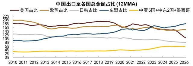 首先看貿(mào)易對(duì)象的變化。關(guān)稅戰(zhàn)以來(lái),我國(guó)對(duì)美出口大幅下滑,但東盟、中東、拉美、非洲等市場(chǎng)迅速填補(bǔ)空缺。