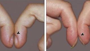 正常手指相對可見菱形空隙,杵狀指空隙消失 | Desherinka/gatewayc