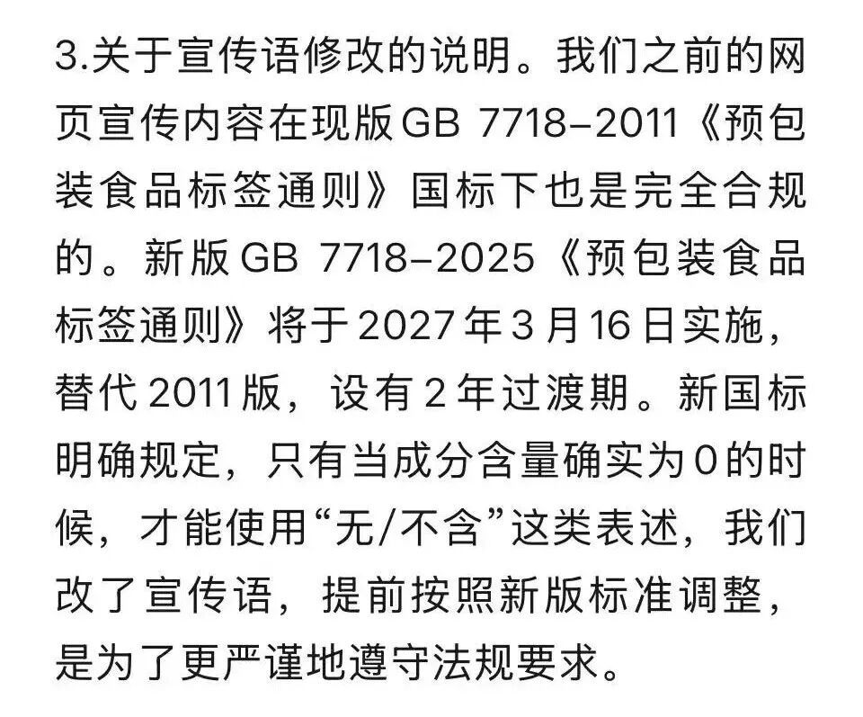 官方熱線工作人員解釋,柚皮添加量有限是因“加多了不好喝”,胡柚苦、香柚酸,現(xiàn)有添加量是研發(fā)測試結(jié)果且獲消費者好評。宋柚汁官方號稱其為復合果汁飲料,果汁總含量≥10%,符合GB/T 31121-2014國家標準,并對降糖功效宣傳等問題作出說明。