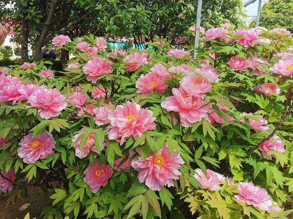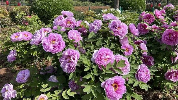 國際牡丹園:約350個牡丹品種開放,分布在華夏園、錦繡園、二環(huán)路、九色園、萬芳園等地。盛開的新品種有東籬銀菊,還有樓蘭美人、水墨丹青、翰墨丹青、老君紫、姚黃、雪蓮、夜光白、梨園紅、初烏、群烏、吉野川等;初開的有皇嘉門、紫紅殿、島大臣、花大臣、花兢、鐮田錦、春柳等。園內荷包牡丹、鳶尾、玫瑰忍冬、黃刺玫、猬實也點綴其間。