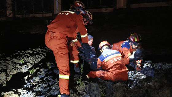 根據(jù)現(xiàn)場(chǎng)情況,消防員首先用腰帶固定住男孩的上半身,再配合繩索向上提拉。然而,由于淤泥黏性較強(qiáng),初次救援沒有成功。