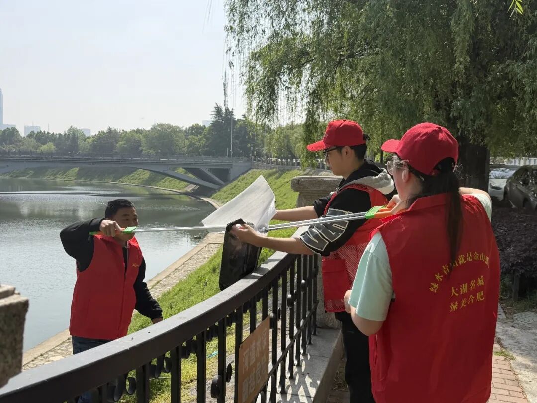 琥珀街道志愿者清理南淝河沿岸垃圾。