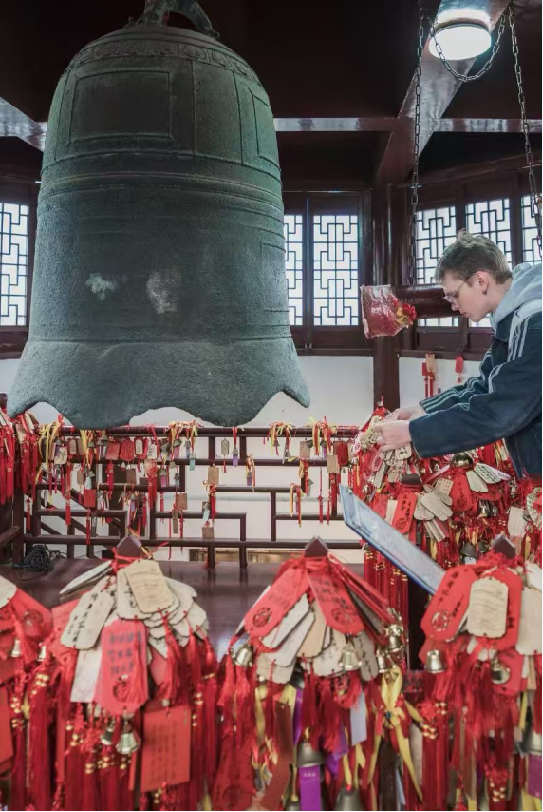 尋寶圖藏著驚喜——里面附有“9.9元古鎮(zhèn)敲愿鐘體驗(yàn)+甜蜜湯團(tuán)免費(fèi)品嘗”組合券,給游客送上滿滿甜蜜。七寶鐘樓是地標(biāo)性建筑,承載著古鎮(zhèn)千年歷史回響?;顒悠陂g,游客憑券去七寶古鎮(zhèn)鐘樓,花9.9元就能親手敲響祈福鐘聲,還能免費(fèi)領(lǐng)兩只現(xiàn)包現(xiàn)煮的七寶湯團(tuán)。親手撞響銅鐘,在悠遠(yuǎn)鐘聲里許下心愿,這是滬上之旅的“第一份儀式感”。5月16日至17日,還有專業(yè)團(tuán)隊(duì)提供免費(fèi)攝影服務(wù)。