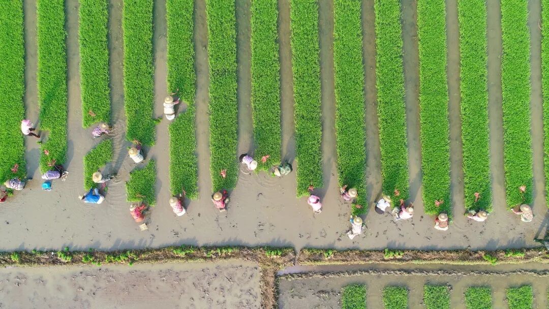 田間遍布辛勤勞作的身影