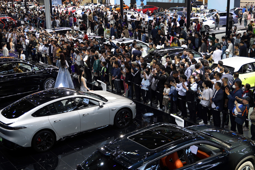 2024年5月1日,北京,觀眾在北京車展上觀看車輛。視覺中國 圖