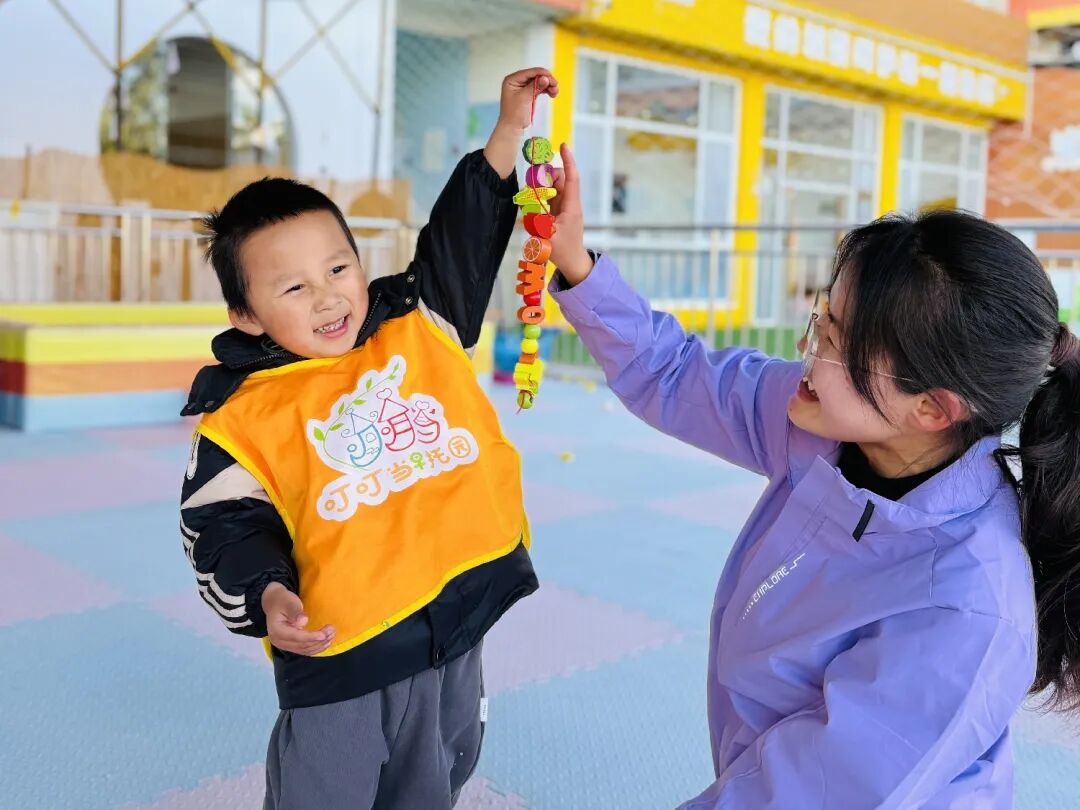 叮叮當早托園的活動室里,3歲的岫林寶貝踮著腳尖,把最后一顆彩色串珠穿進項鏈?!袄蠋熌?!”她舉起作品,眼睛彎成月牙。半年前剛入園時,因父母外出務工性格內向的她總躲在角落默默哭泣,如今在托育老師王麗梅每天的溫暖擁抱和精心設計的感統(tǒng)游戲陪伴下,成了班里最活躍的“小助手”。